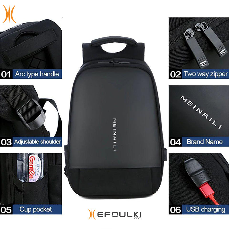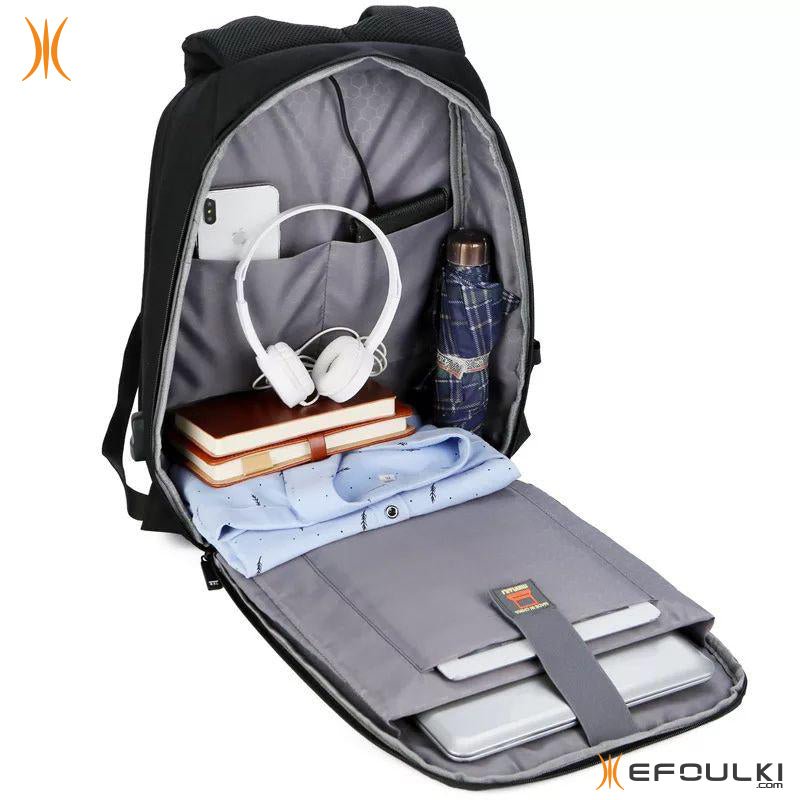 Le sac à dos a une conception en trois couches. Vous pouvez donc personnaliser vos articles pour les rendre plus faciles à utiliser. Il y a des poignées sur le dessus et les côtés du sac, qui peuvent être changées à tout moment. Il y a une interface au bas du sac à dos, vous pouvez charger votre téléphone à tout moment ou écouter de la musique.